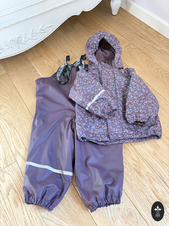 80 dydžio (+6 cm) softshell kombinezonas be dėmių ar skylių. Vienintelis trūkumas - šiek tiek nusidėvėjimo ant kojų apačios. Gumos taip pat pridėtos, nuotraukoje nėra, nes nuimtos ;)