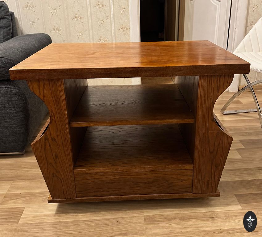 Ąžuolinis kavos staliukas.