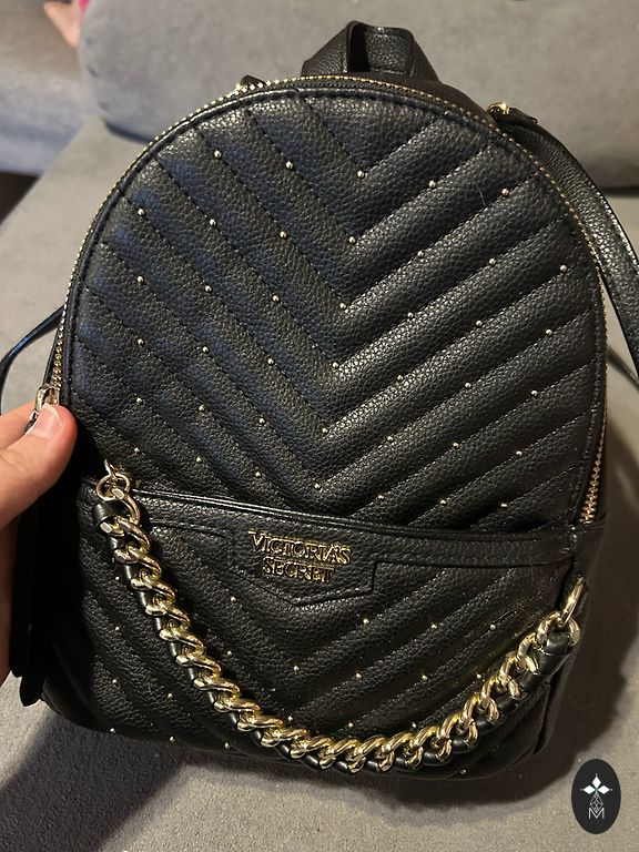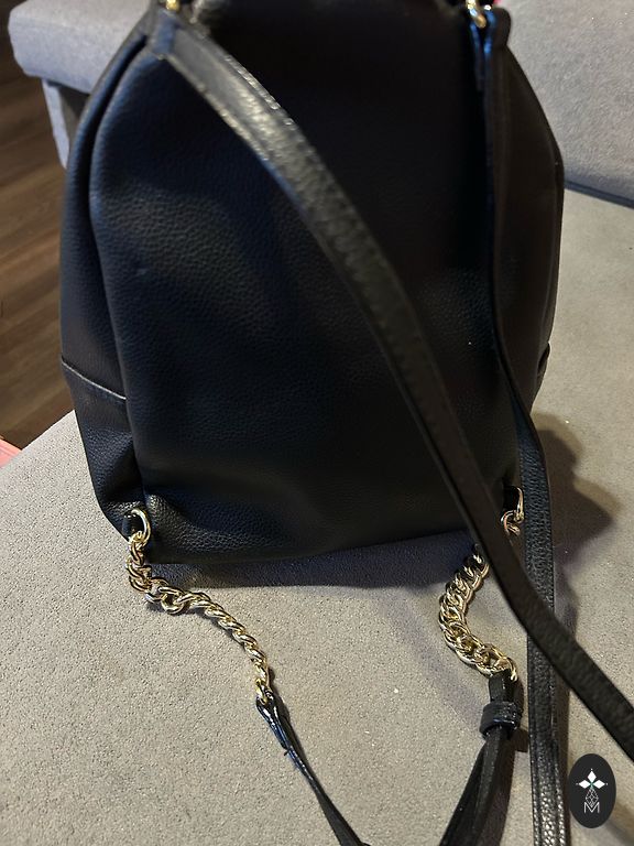Lengvas juodos audinio kuprinės, užsegamos suveržiamu virvele ir segtuku. Šonuose kišenėlės. Viduje vieta kompiuteriui/planšetei ir 2 atviros kišenėlės priešingoje pusėje. Kuprinė pirkta Barselonoje praeito pavasario kruizo turo metu. Mažai dėvėta. Matmenys: 42x26x13 (išskleista forma: 42 aukštis, 43 plotis).