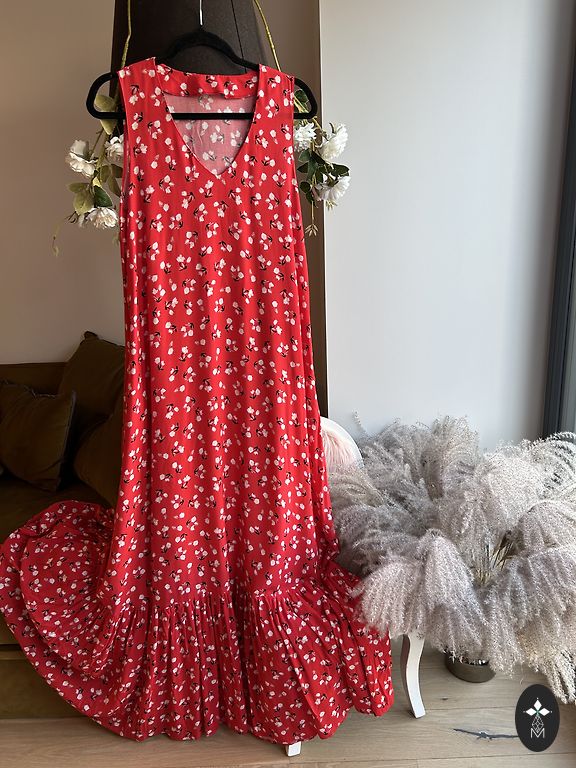 38 dydis, bet tiks ir 40. Ilgis - 132 cm, krūtinė - 45 cm, pečiai - 37 cm. Liemenyje yra guma ir raištelis.