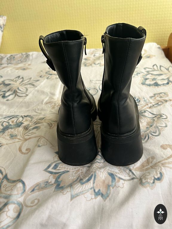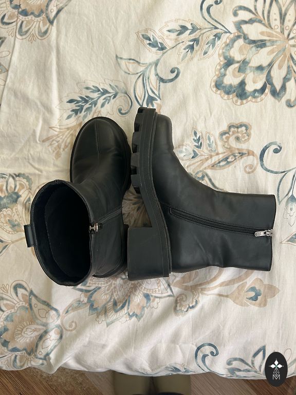 Стильные черные ботинки типа "combat". Продаю немного использованные, черные ботинки на современной, толстой подошве. Удобство: сбоку есть молния (не нужно каждый раз шнуровать). Тепло: внутри мягкая утеплённая подкладка – идеально для весны/осени или более теплой зимы. Состояние: очень хорошее, без дефектов.