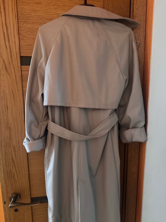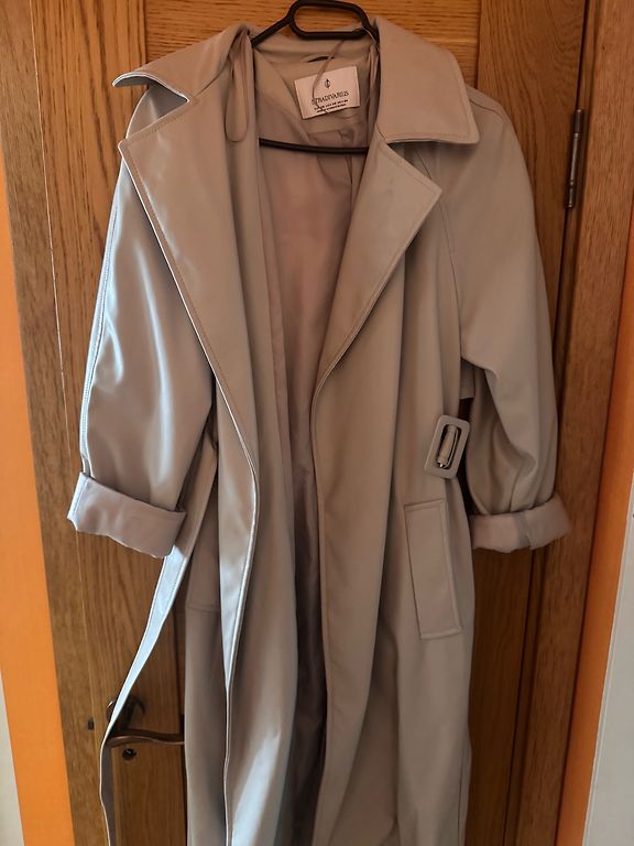 Viegls, plāns buklē tipa mētelis XS vai mazam S. Gaisa temperatūrai +8 - 15 grādi.