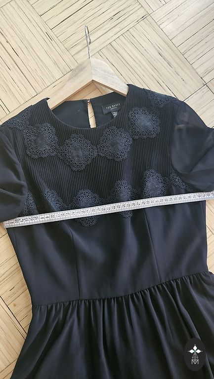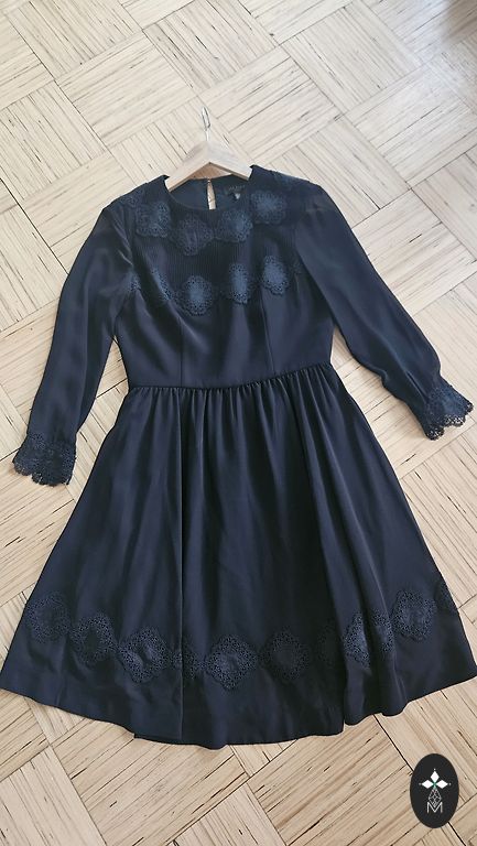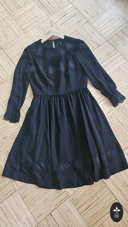 Beautiful dress for celebrations, formal events. The top layer of the dress up to the waist features lace trim, as well as lace ruffles on the sleeves and lower part. Slight signs of use. Bust up to 55 cm, hips approx. 70 cm, length 126 cm. The dress is stretchy.