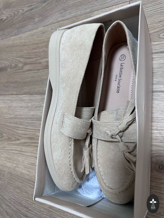 Ļoti ērti augsti mokasīni, virspuse no dabīgās zamšādas, viegla zole, piemēroti platām pēdām, papēža augstums regulējams ar auklām.