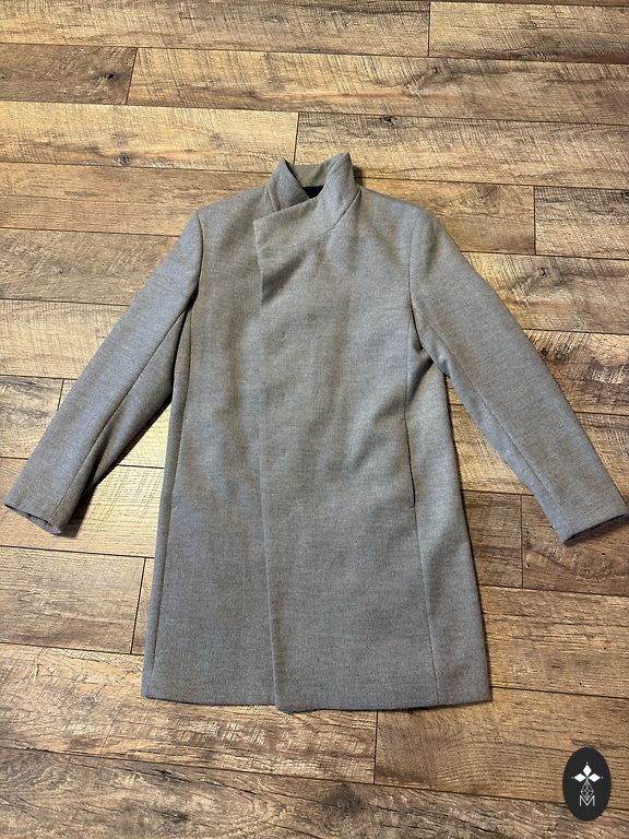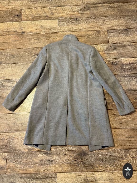 Pārdodu auduma mēteli labā stāvoklī. Zem padusēm platums 55cm, viduklis 53cm, gurni 57cm, garums no pleca līdz apakšējai malai 87cm. Mētelim ir arī iekšējā kabata.
