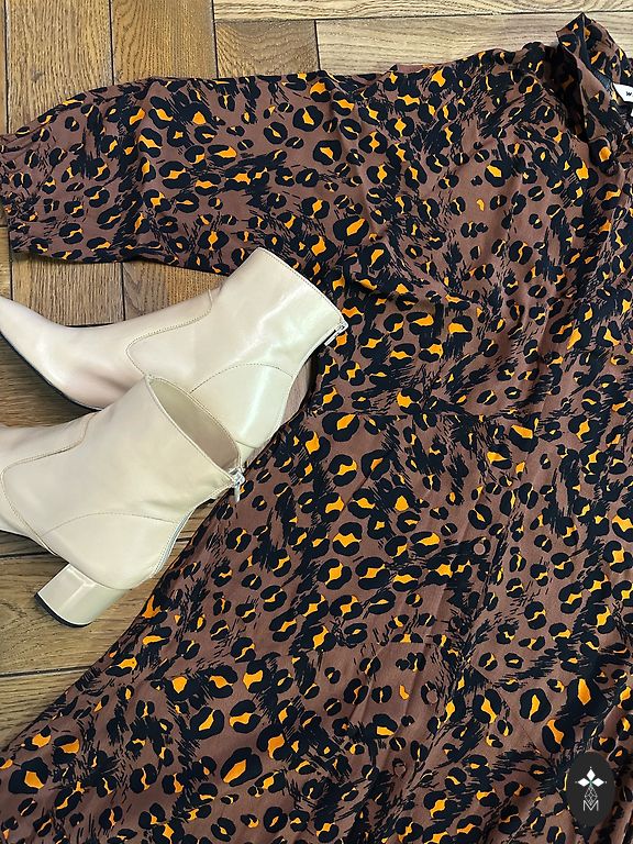 Длина 109, под мышками 64, талия 64, бедра 67. Есть карманы. Идеальное состояние.