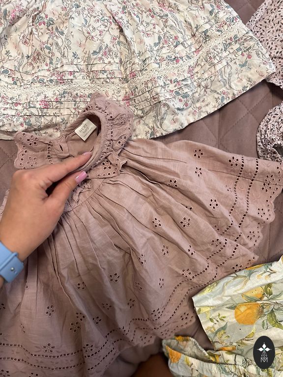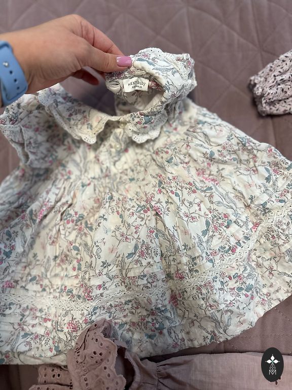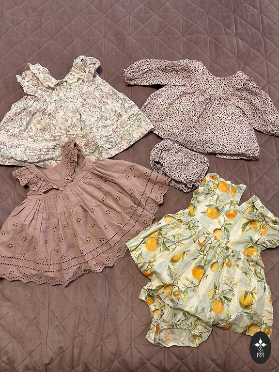 Viena Sinsy rozā kleitiņa 3-6 mēneši (nelietota ar cepuri komplektā) un divas Next 3-6 mēneši , izmantotas tikai mēneša bildei. Izmazgātas.