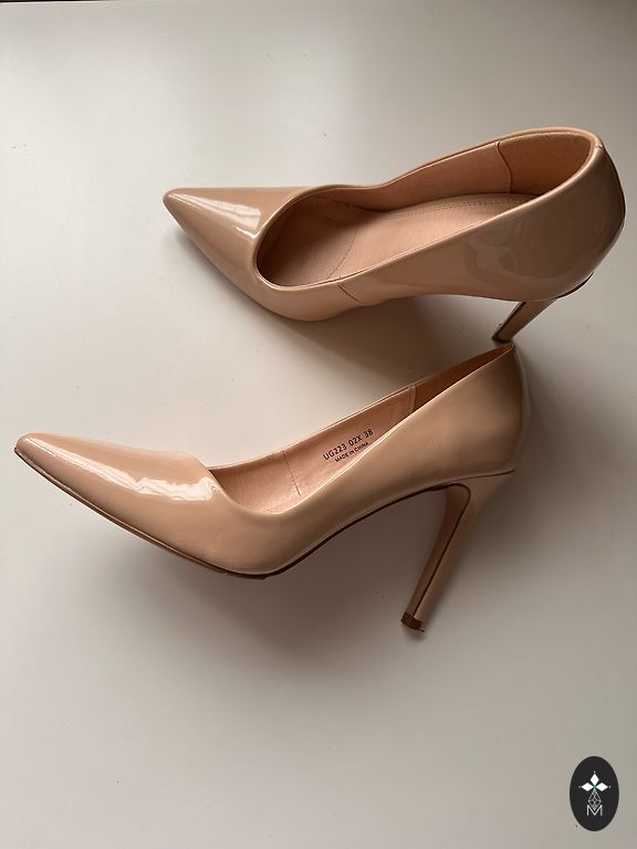 Bēšās kurpītes ar siknsiņām uz ērta stabila papēža 10€ plus sūtīšana. Apavi ir maz velkāti