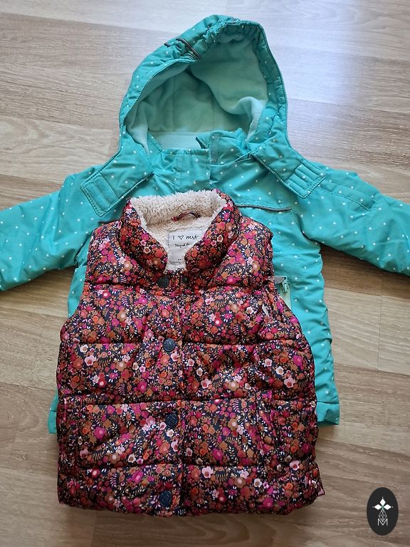 Atidu. Striukės, kombinezonas 80 dydžio, paltas 86 dydžio.