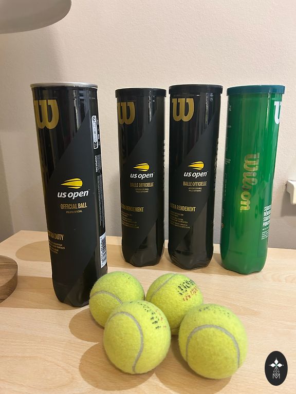 Kokybiška skvošo raketė su dėklu ir vienu kamuoliuku. Stovi be naudojimo.