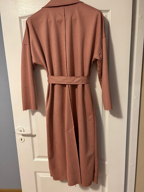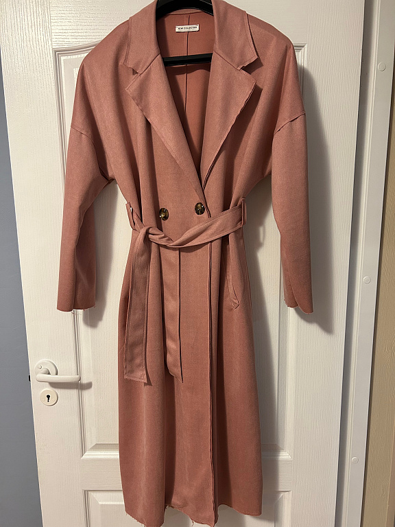 Daugiau persiko spalvos, krūtinė 120/150, šikšnosparnių tipo, ilgis 97, gobtuvas, minkštas malonus mezgimas.