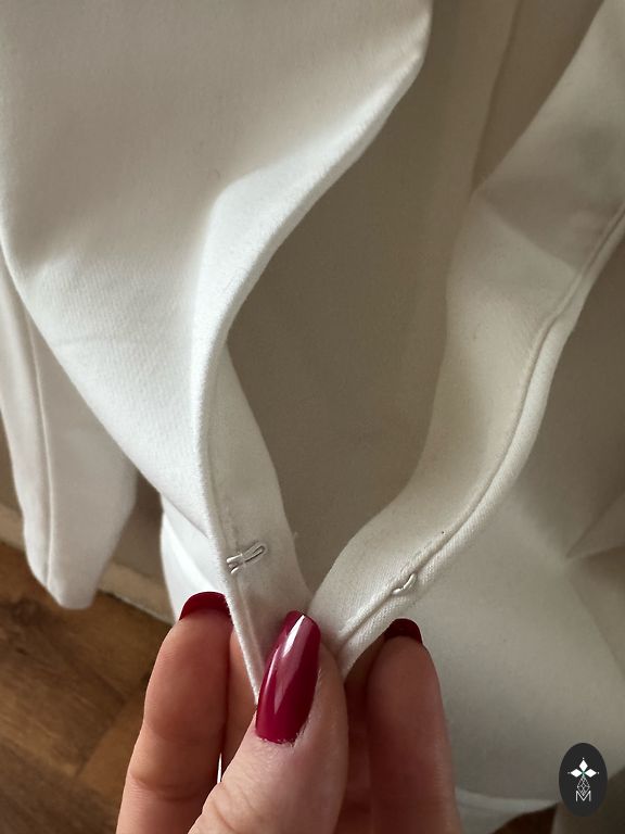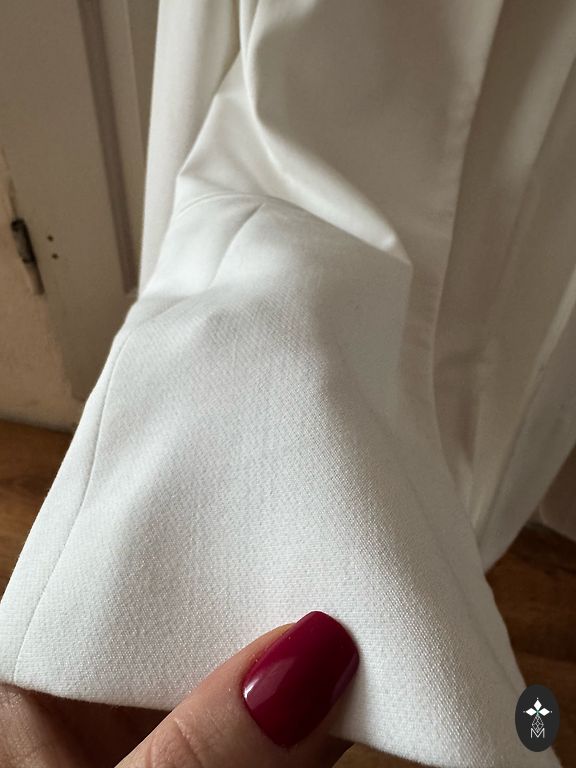 I have worn the pants a few times. Size 42. No flaws, selling only because they no longer fit me. Very beautiful tone of the pants, comfortable.