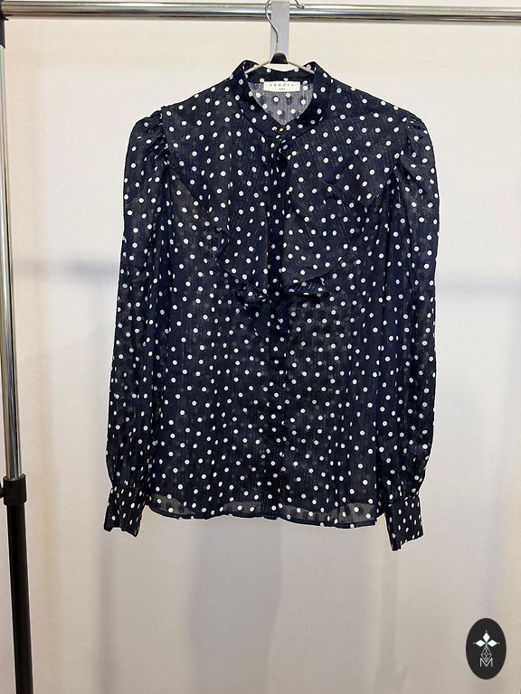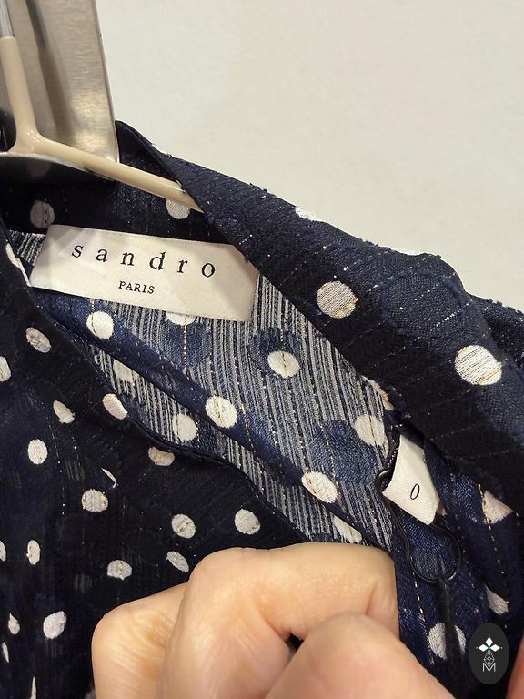 Zilā jauna. Violetā žakettipa augšiņa, striķīši apsienas ap vidukli. Abas xs-s izmēram