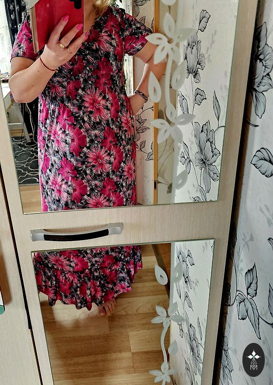 Very bright, light, thin, non-wrinkling, beautifully falling ruffled dress. A silhouette. Even brighter in real life. Bust 126, length 124 cm. Size indicated as 48.