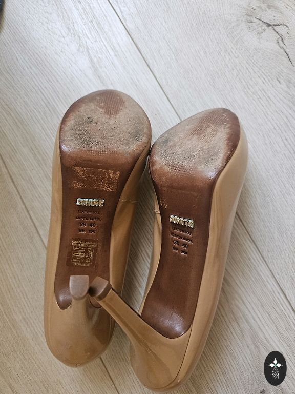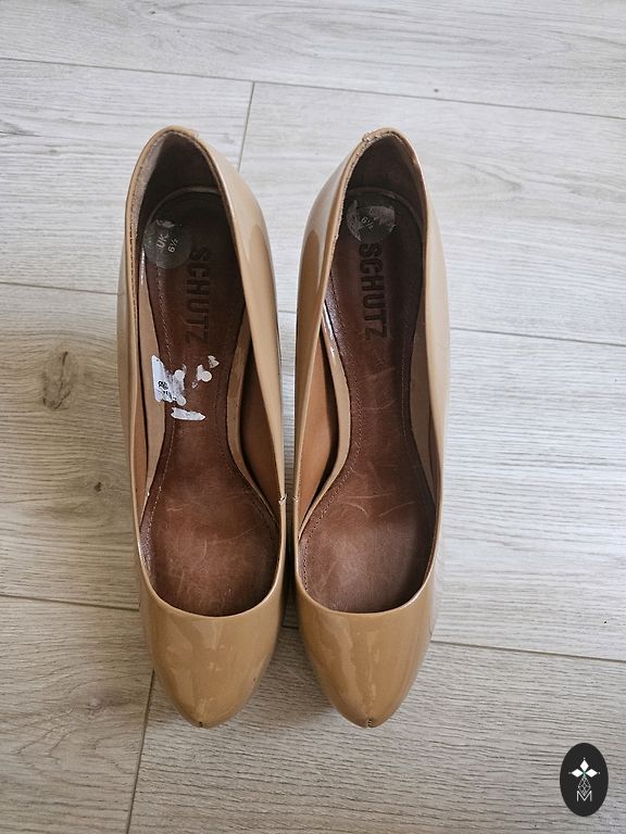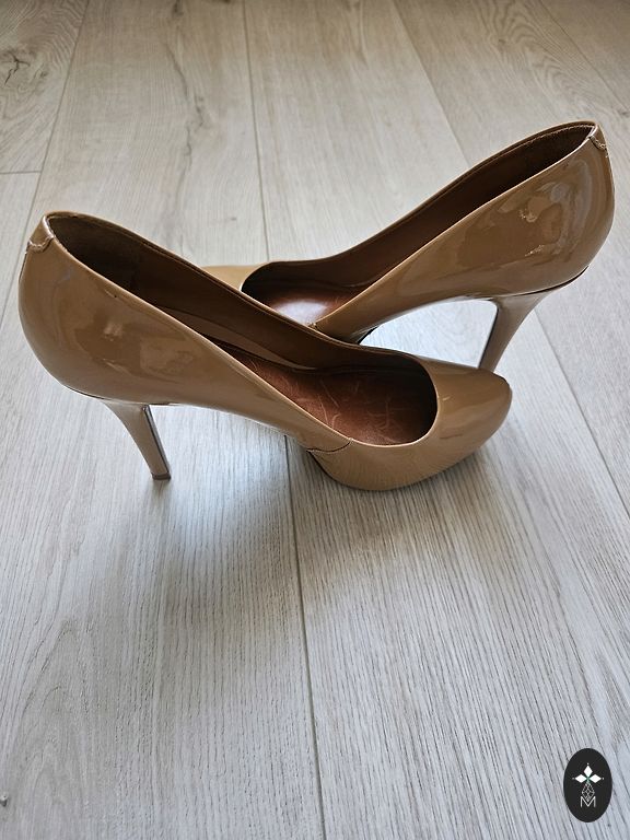 Tamaris kõrgete kontsadega kingad beežis lakitud värvis, läikiva pinnaga ja pehme Touch it sisetallaga.