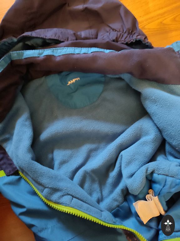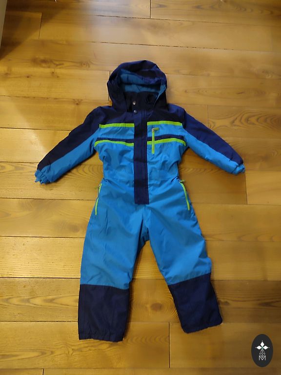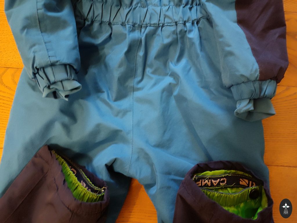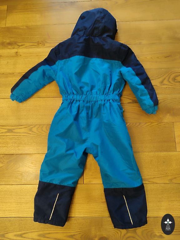 Kombinezono ilgis nuo peties iki apačios 83 cm, vidinės siūlės ilgis 34 cm. Trūkumas - paviršiniai įbrėžimai ant kelių ant atšvaitų.