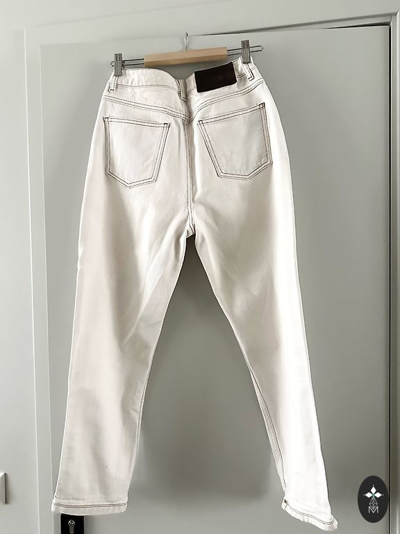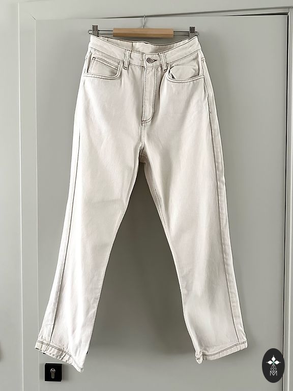 Носила после родов, 26 размер. Укороченая модель, мой рост 155.
