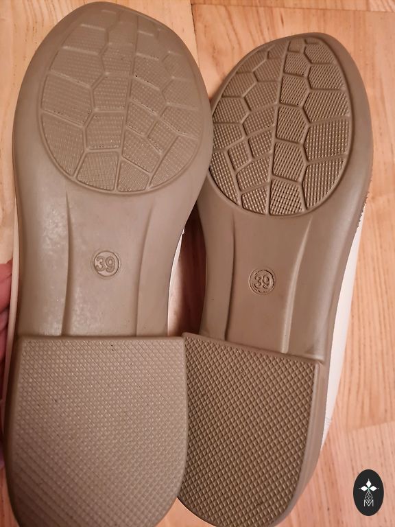Visiškai naujos tamsiai rudos spalvos balerinos. Pirkau Vinted, nes buvo nurodytas 40 dydis (26 cm vidpadis), tačiau dėl susiaurėjusios nosies man netinka. Geriau tiks 39 dydžiui.