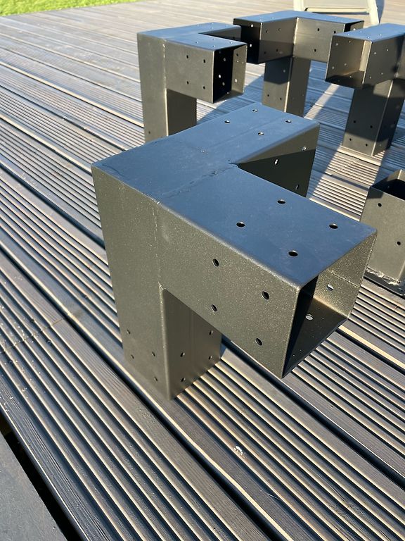 Connection set for a shed. Designed for beams 9x9cm. Beams are intended to be inserted into connections at a depth of 15cm. Set includes screws. 4 pieces of top corner connections. 4 pieces of connections for attaching to the base. The last picture is for reference from the internet. Can be picked up in Mārupe, Riga center, or sent via Unisend.