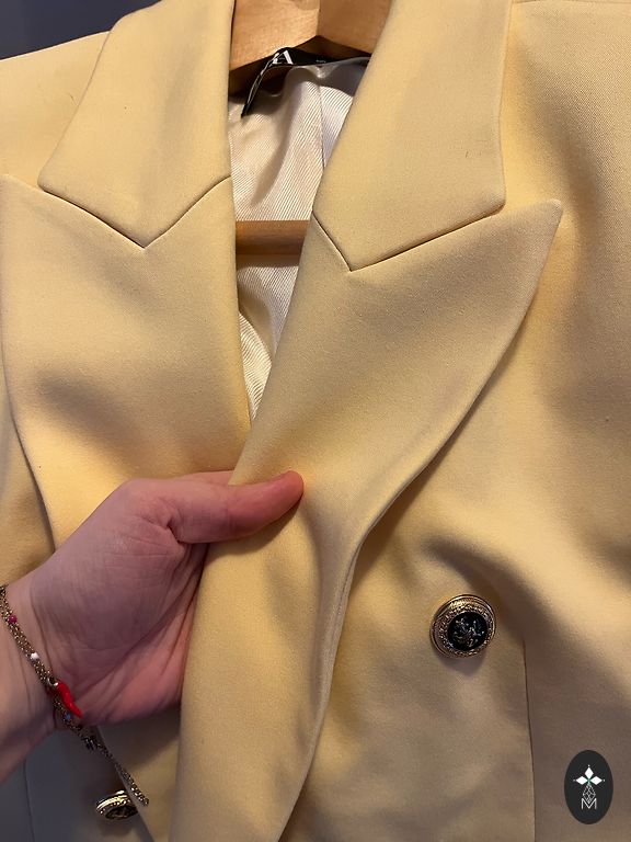 Ilusates värvides voodriga jakk, noor, on elastaaniga, valmistatud Itaalias. Taskud dekoratiivsed. Rinnaümbermõõt 120cm ja pikkus 77cm. Võib olla ka oversize jakk.