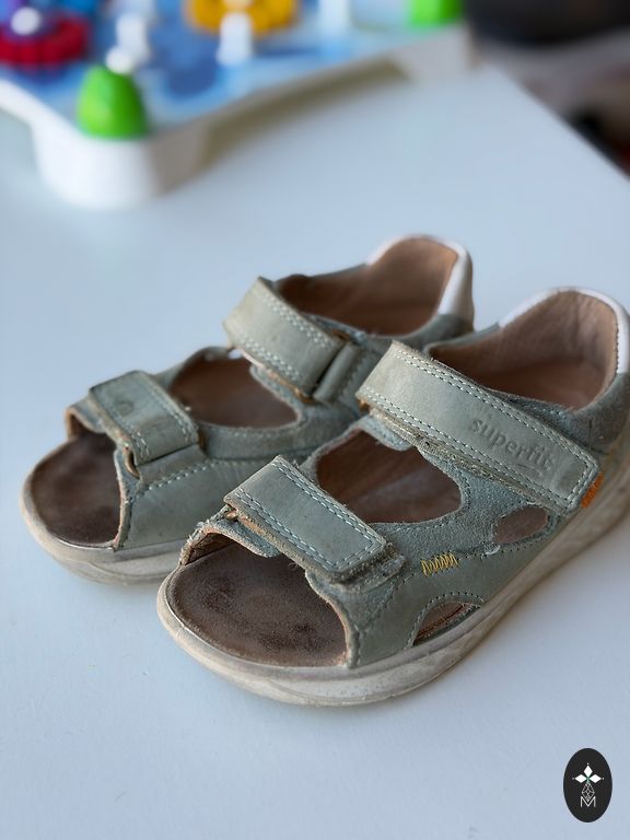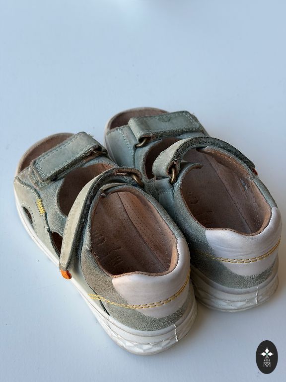 Very beautiful Mayoral leather sandals for kindergarten. Size 25, fits a 14.5-15cm foot. The fasteners stick very well.