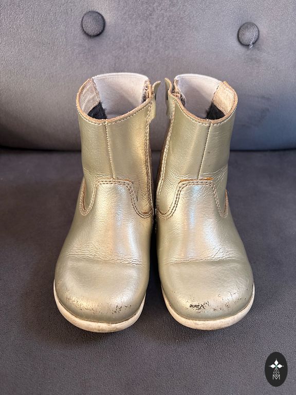 Nubuka ādas zābaciņi. Ir ērti, meitai patika. Iekšzoles garums ir apmēram 16 cm.