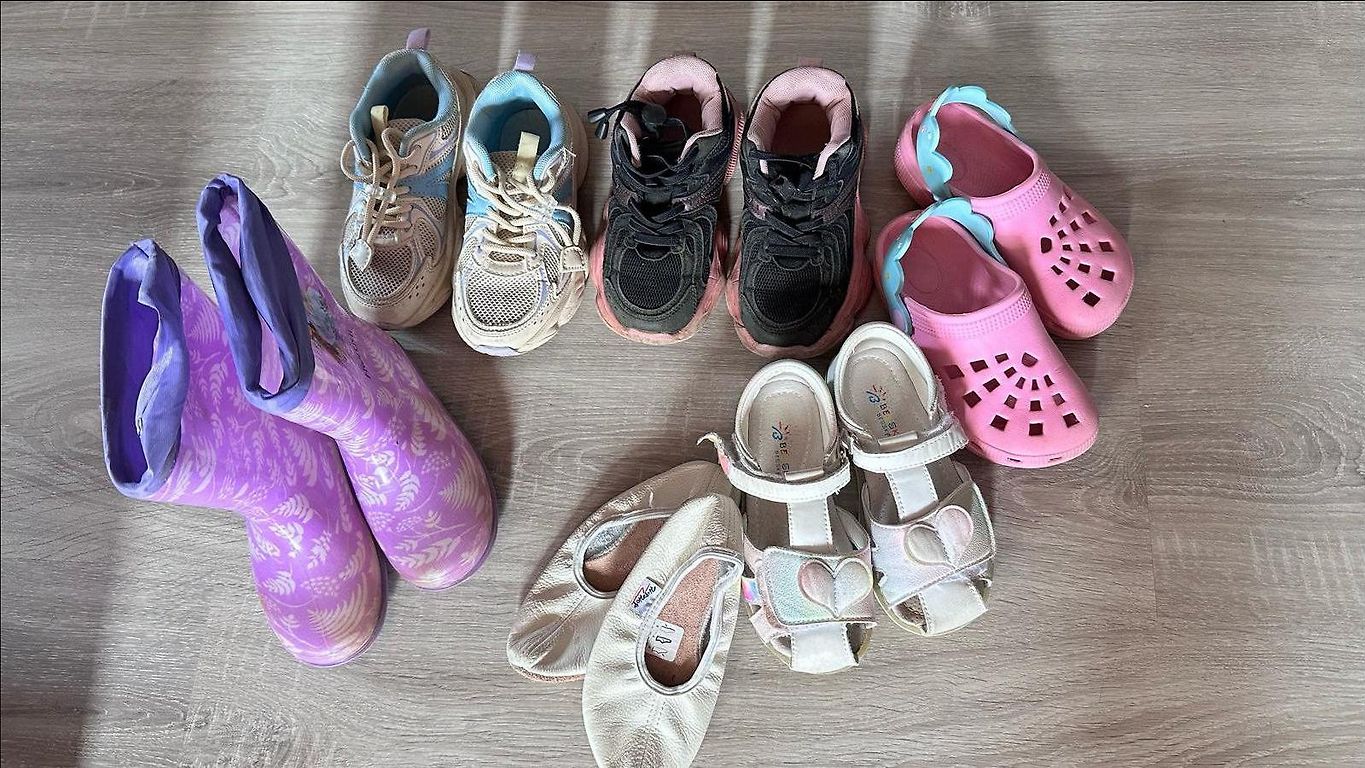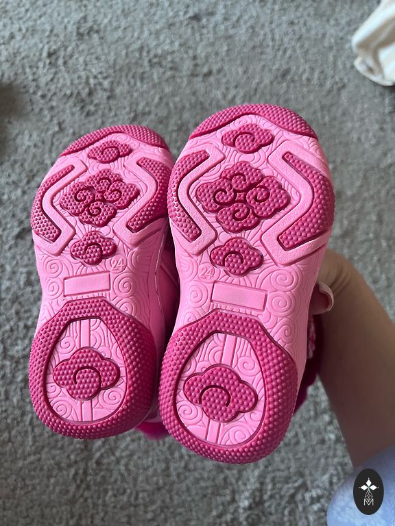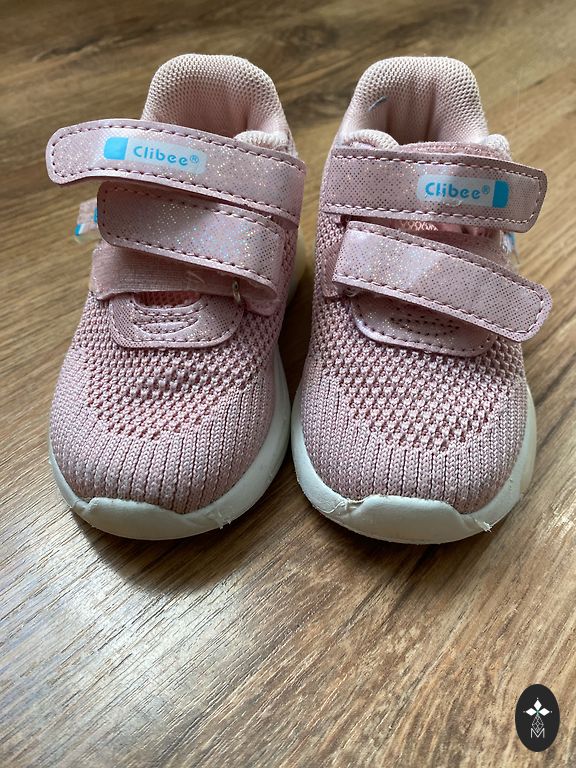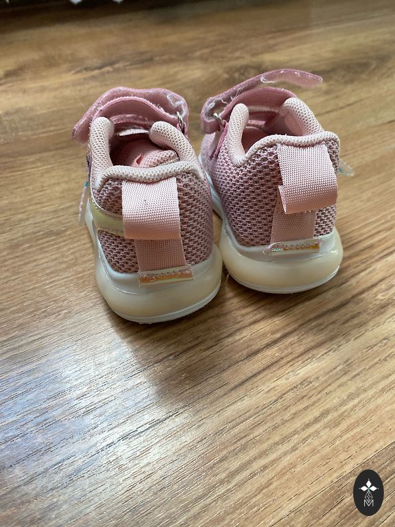 Melniem spīd zole, kad staigā, tie ir auduma un ļoti mīksti. Rozā ir nedaudz saskrāpēts deguns. Kurpītes ir tīras. Lieliski piemērotas skrienot dārzā. Cena par abiem pāriem.