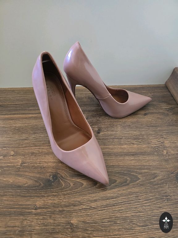 Helebeežid kõrge kontsaga kingad.