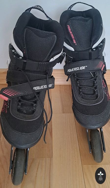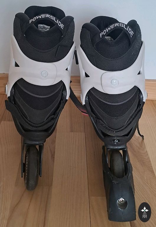 Komplekt Powerslide rulluisud suurus 38 (sisetald 23,5 cm) + Powerslide kaitsmed. Kasutatud mõned korrad. Tel. 26400844