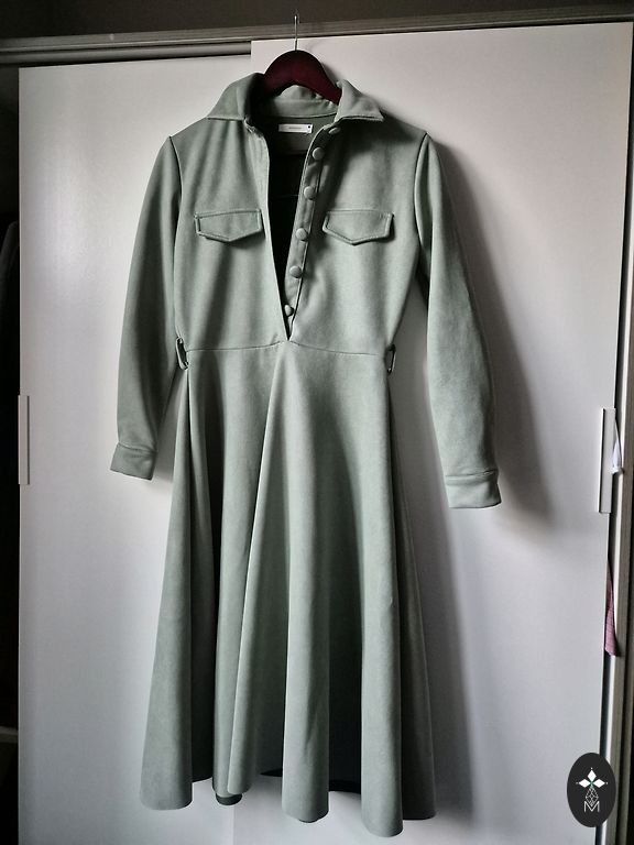 Latvietės versijos su užrašu Latgaliete suknelė. Suknelė tiks XXS iki S dydžiui. Galbūt net M. Jei reikia ką nors pamatuoti, praneškite. Suknelė turi surišamas petnešas, todėl ilgį galima reguliuoti. Yra kišenės. Siūta pagal užsakymą, dėvėta kelis kartus, nes man nelabai tinka.