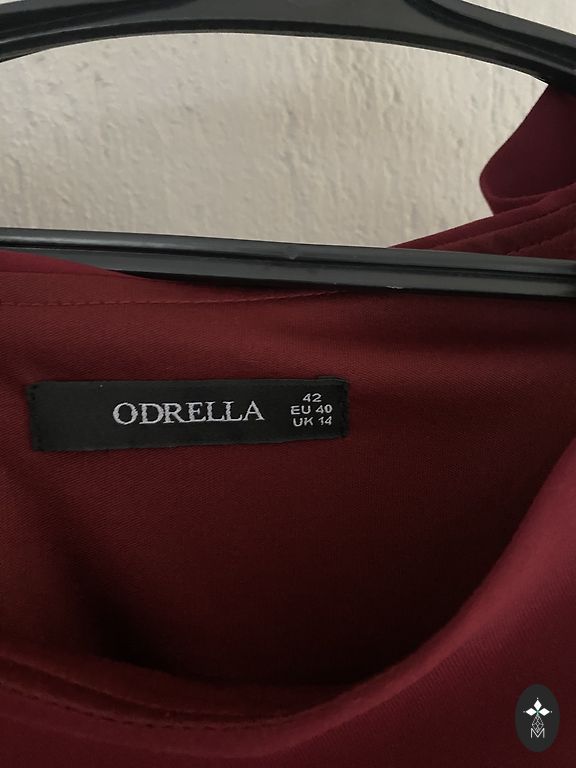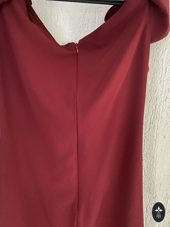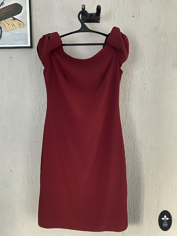 Skaista kleita iziešanai. Krāsa tumši violeta. Priekšpusē divas krītoša auduma daļas, kas veiksmīgi noslēpj nedaudz apaļīgāku vēderiņu. Audums gana staipīgs. Muguras daļa 35cm. Rokas garums no pleca-60cm, viduklis40cmm , bet var pastiept ;) kopējais garums 100cm