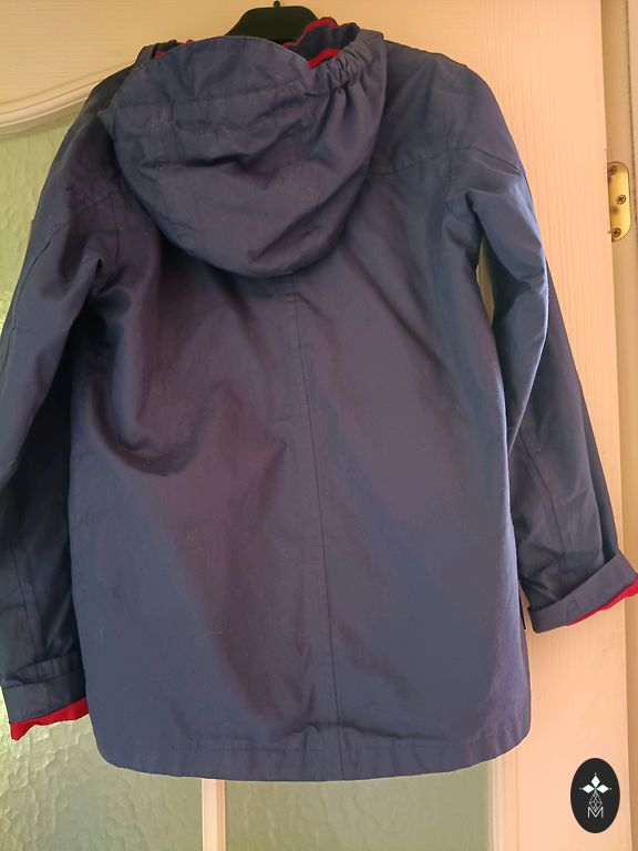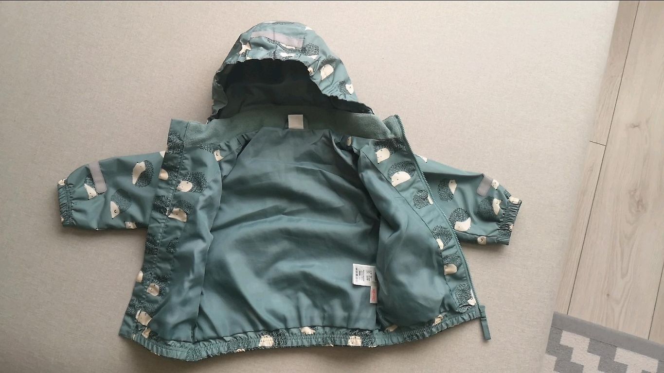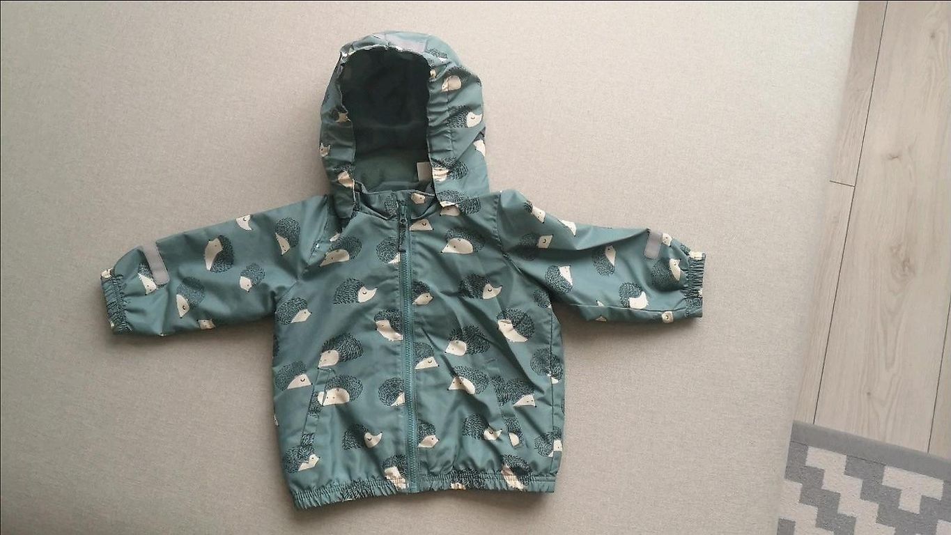 Price for 2 pieces together! The color on the metal buttons is worn, in very good condition! Size 128, removable hoods!