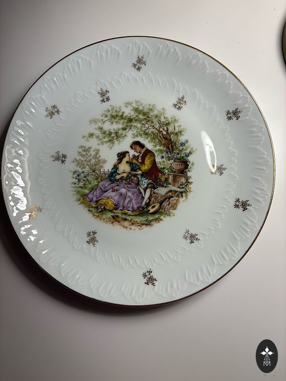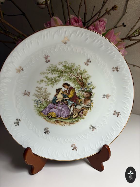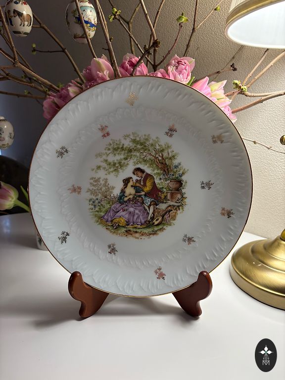 Elegant vintage ceramic vase with an expressive decorative pattern and gilded rim. The deep tone and ornamental design give the item a special charm and sophistication.