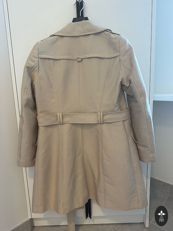 Defektų nėra. Lengvai apšiltintas - vėsiam pavasariui, rudeniui. Ilgis 114 cm, tarp pažastų 56 cm.