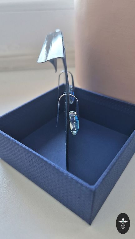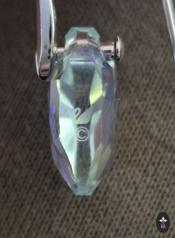 Stiklo menininkės Ingos Salmiņas (Latvija, Līvāni) sukurti auskarai. Ilgis 7 cm. Gana sunkūs. Defektų nėra, nešioti nebuvo, tik matuoti.