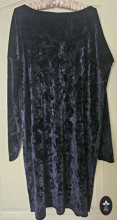 The dress was purchased for a one-time formal event. For a height of 167 cm, it ends slightly below the knee, with 3/4 sleeves, and pairs well with jackets or is great on its own for everyday wear, office, or smart casual outings. Classic dark blue color. Size indicated as XS, but fits well on S without tightness. Very grateful material. Looks considerably worse on a hanger, to know how to photograph it nicely, but fits well at the waist, and is comfortable for both larger and smaller bust sizes.