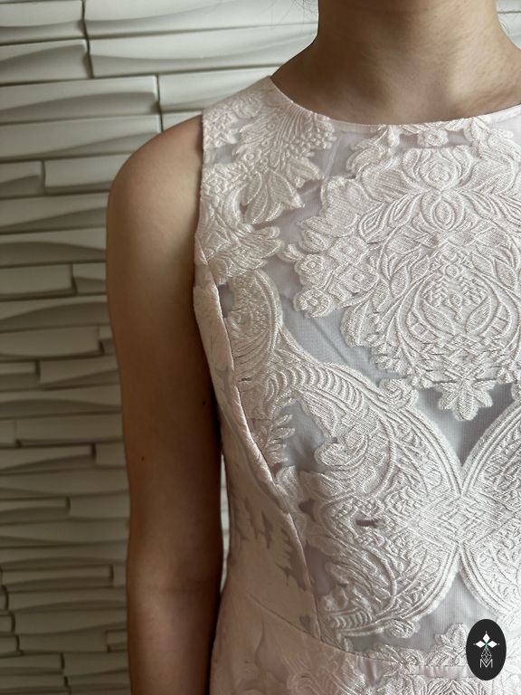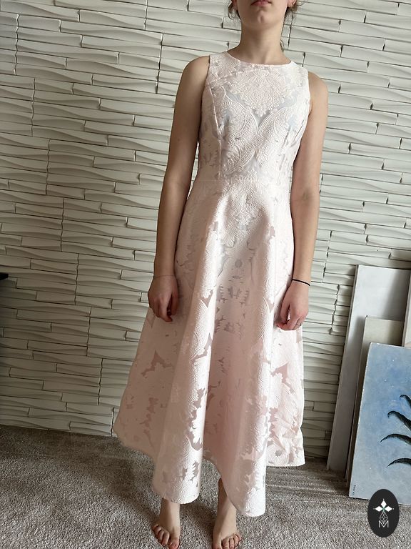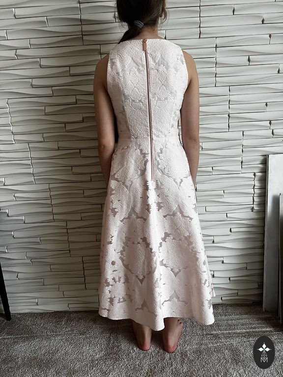 Ted Baker kleita, kokteiļiem vai ballēm. Aizmugurē pilnībā atverama rāvējslēdzēja. Audums ar spīdumu.