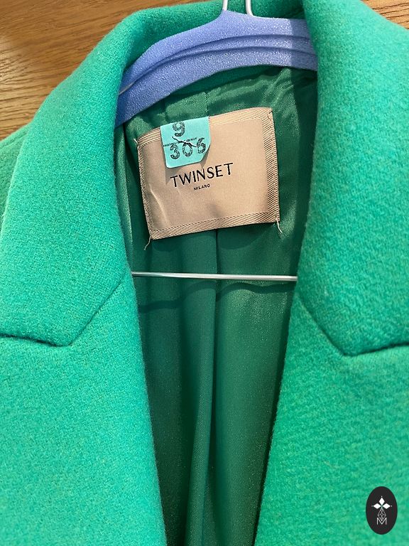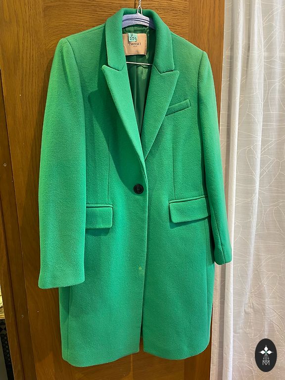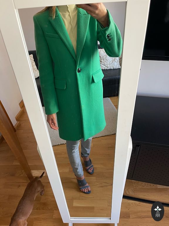 Spring coat in a beautiful deep green color. Fits snugly to the figure. Made of thick material and has a very beautiful greenish emerald lining. In perfect condition, worn only a couple of times.