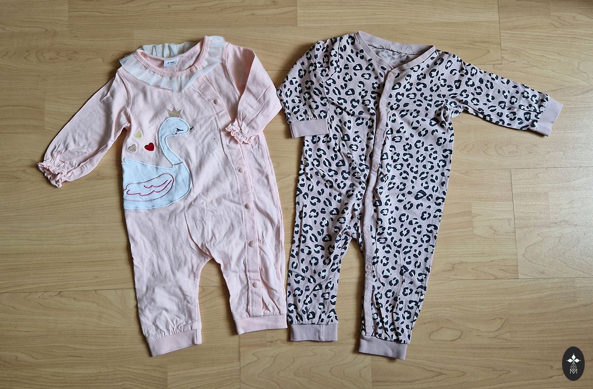 Mugavad bodid, sest pole vaja üle pea tõmmata, vaid lapse saab küljele keerates selga panna.