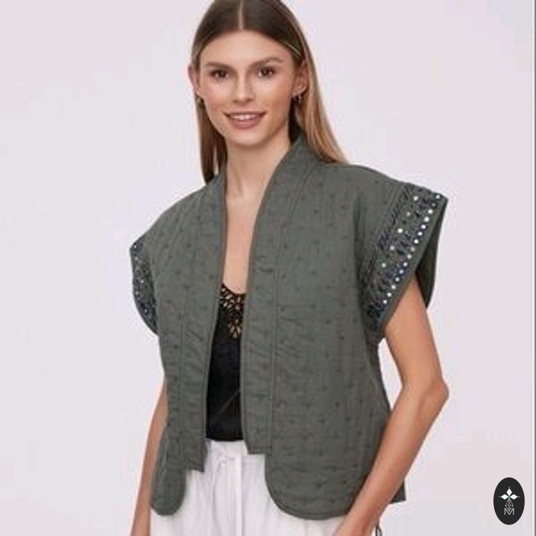 Stilingas languotos švarkas su dvigubos eilės sagomis. Puikiai tinka tiek kasdienai, tiek biurui.