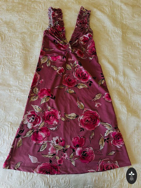 Bright and feminine pink dress with thin straps and a V-neckline 💗 Lightweight, flowing fabric with a beautifully highlighted waist and a loose silhouette. Composition: 52% viscose, 48% polyester. Condition very good.