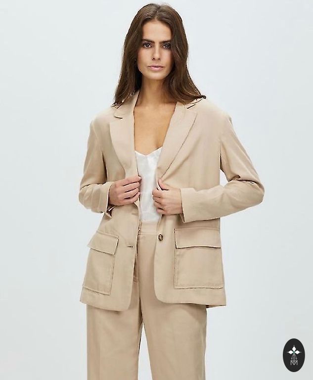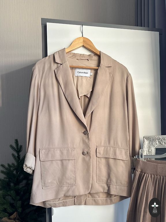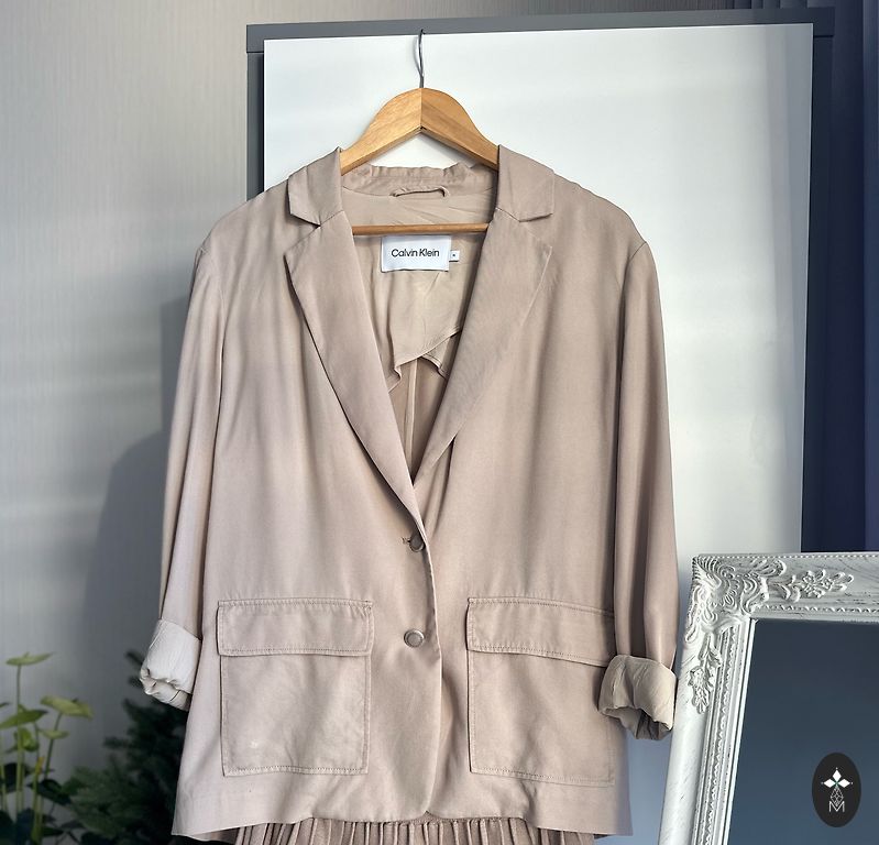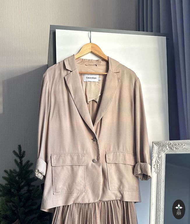Eleganta ZARA žakete klasiskā bēšā tonī ar dubulto pogājumu un izteikti strukturētu siluetu. Smalks, izkopts dizains, kas piešķir old money un Parisian chic noskaņu.