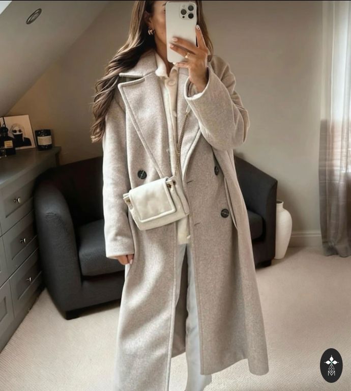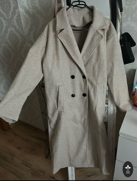 Naujas kremo spalvos alpakos paltas. Tinka nuo L iki 2XL aukštesniems žmonėms.
