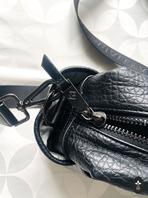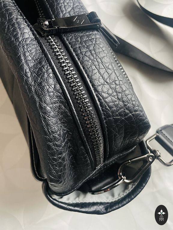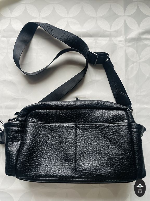 Bag with a wide strap, many pockets, soft.
