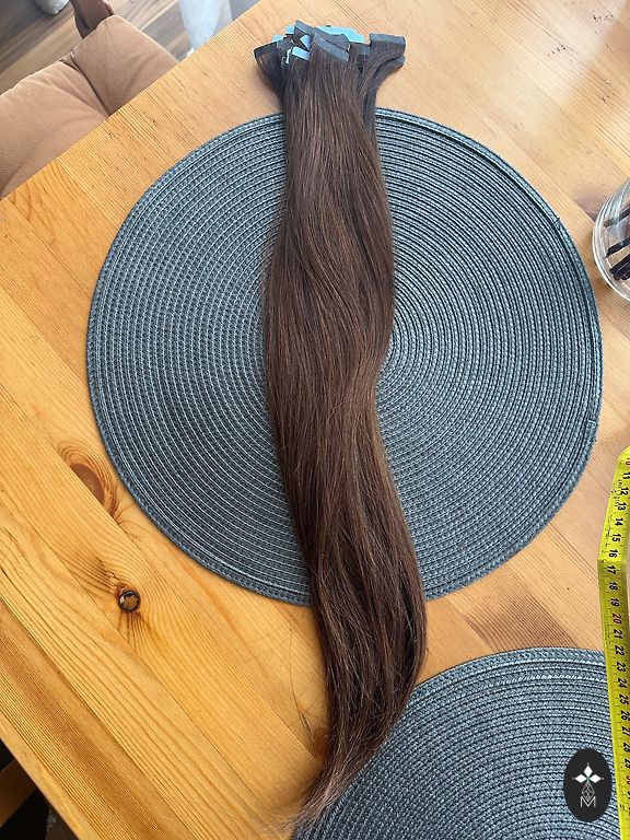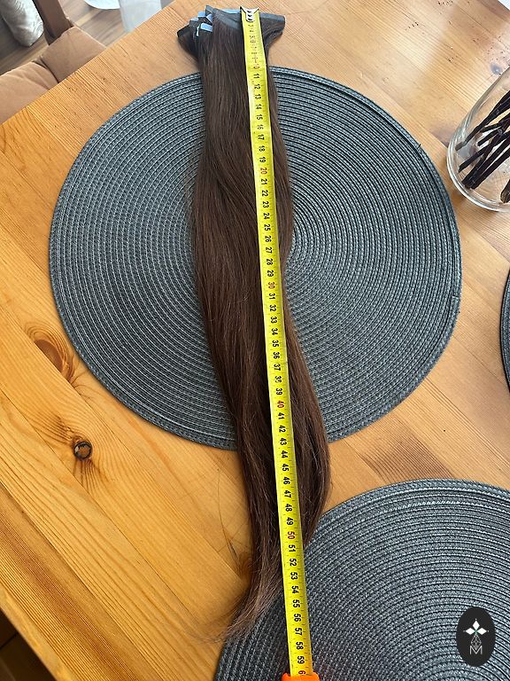Pārdodu 2 mēnešus lietotus matus. Kopāk 115 šķipsnas. Pieliekot sānos bija pakāpenisks griezums tāpēc 20šķipsnas ir ap 50cm un 95 šķipsnas 53-55 cm. Ja nepieciešams personīgi varu nosutit pirkuma čeku.
