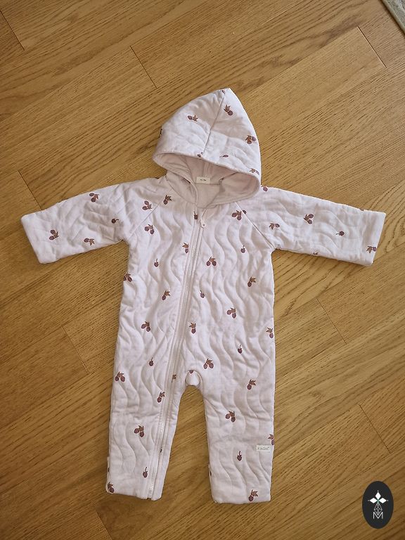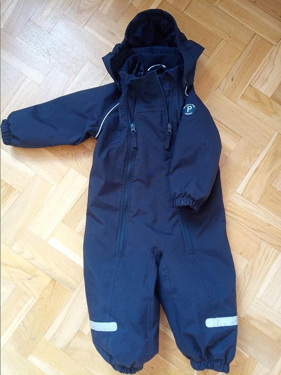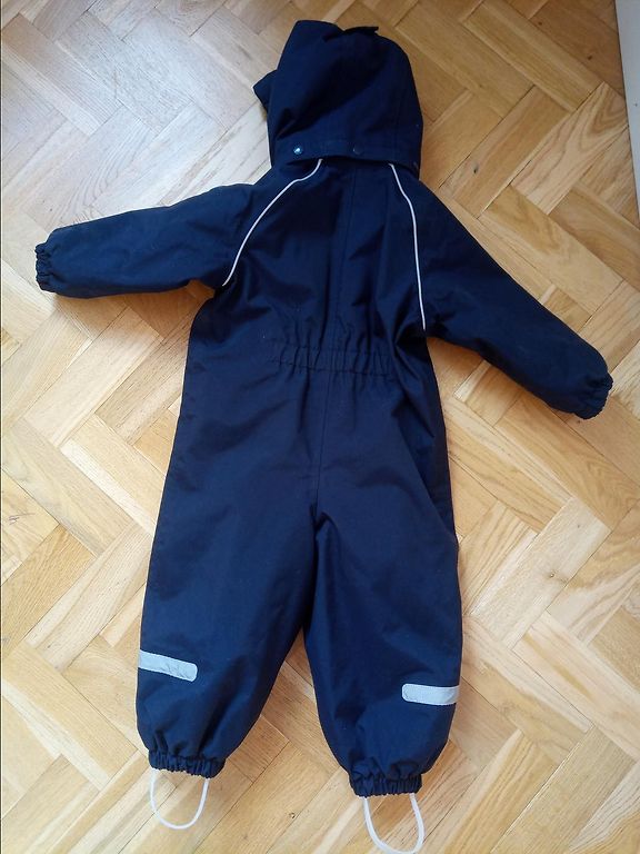 Spring soft shell jumpsuit. Bought new and used only a little by someone sitting in a stroller. No foot elastics are provided.