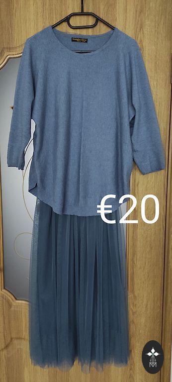 Light blouse, can be worn with a skirt or a skirt with the same color jacket. The outfit is loose, flexible, shoulder width 42 cm, skirt length 88 cm.