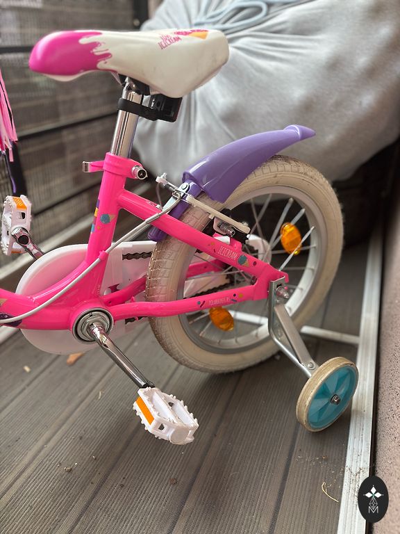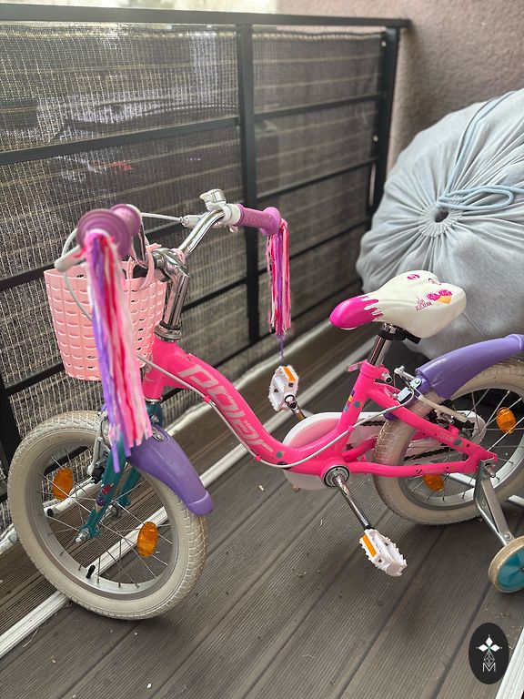 BMW jalgratas 14 tolli. Sobib lastele alates 3 eluaastast. Saab kasutada ka tasakaaluratast, pedaalid voi eemaldada. (Viimane foto). Kaal ilma pedaalideta umbes 6 kg, pedaalidega umbes 7 kg. Tütar õppis selle jalgrattaga sõitma 3 eluaasta vanuses ilma abiratasteta, sõitis kuni 5 eluaastani, kui juba oli vaja suuremat jalgratast.