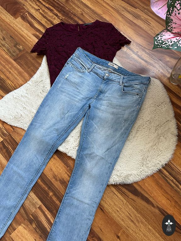 Džinsai, dėvėti 3 kartus, tinka gerai L, galbūt XL.