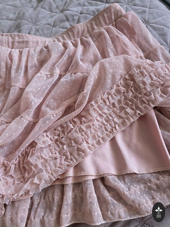 Размер S для платья, небольшая сборка в области талии, так же как и на концах рукавов. Платье не мнется, темно-синего цвета с цветочными узорами. Ткань платья по всей поверхности мелко "гофрирована".